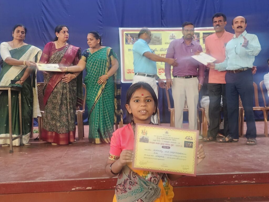 Anarghya Bhat of class III has won FIRST PRIZE in the Taluk level , FANCY DRESS COMPETITION organized by the Educational Department of Karnataka.