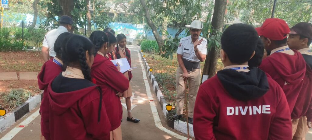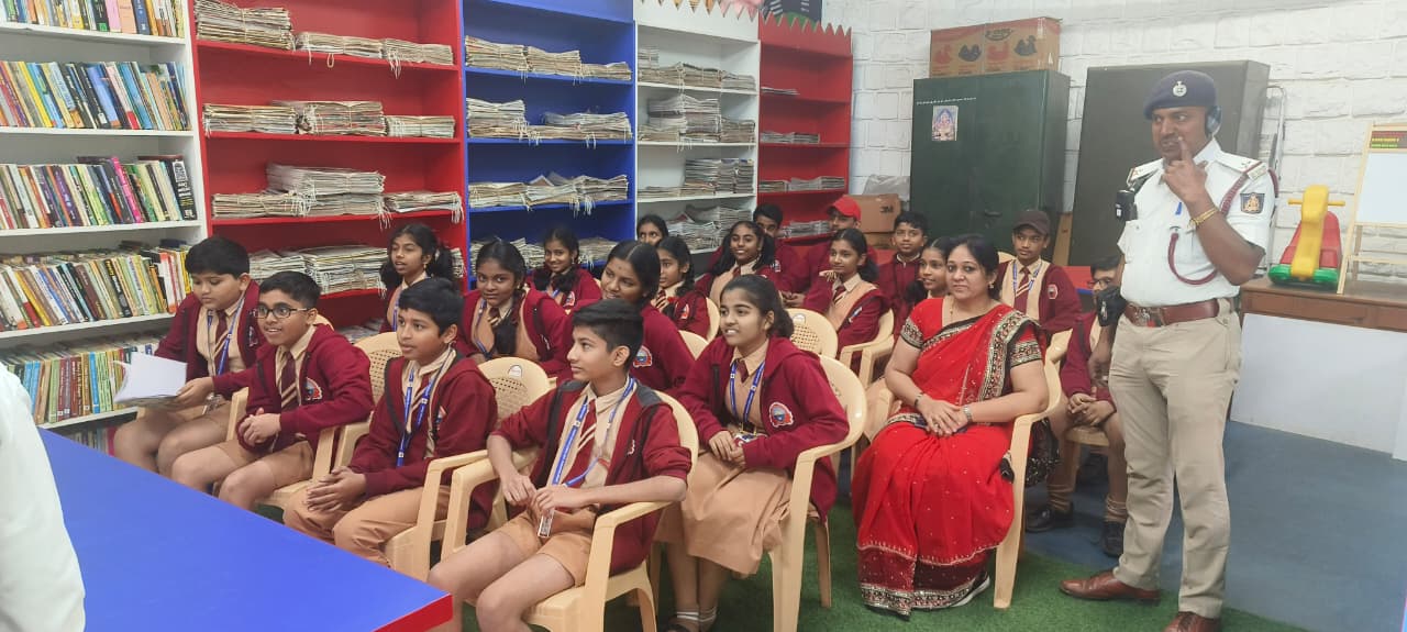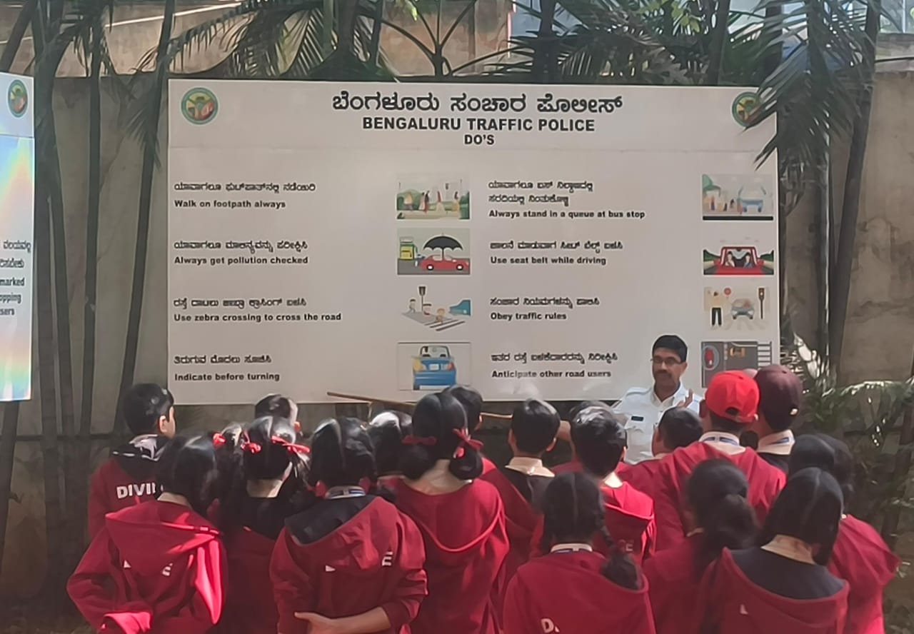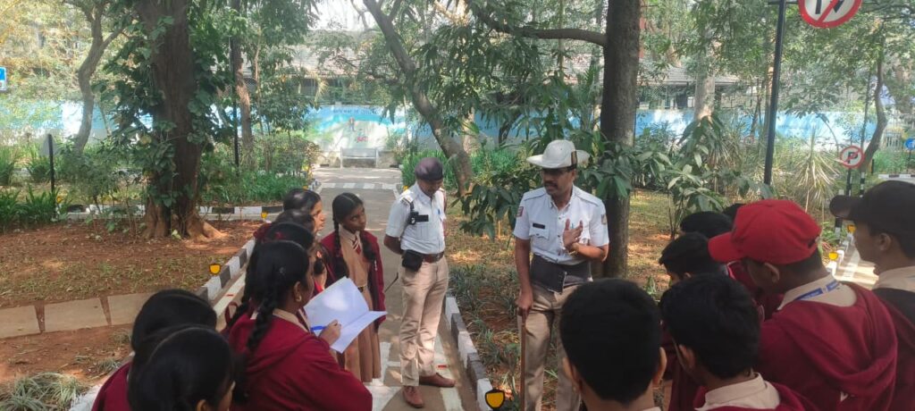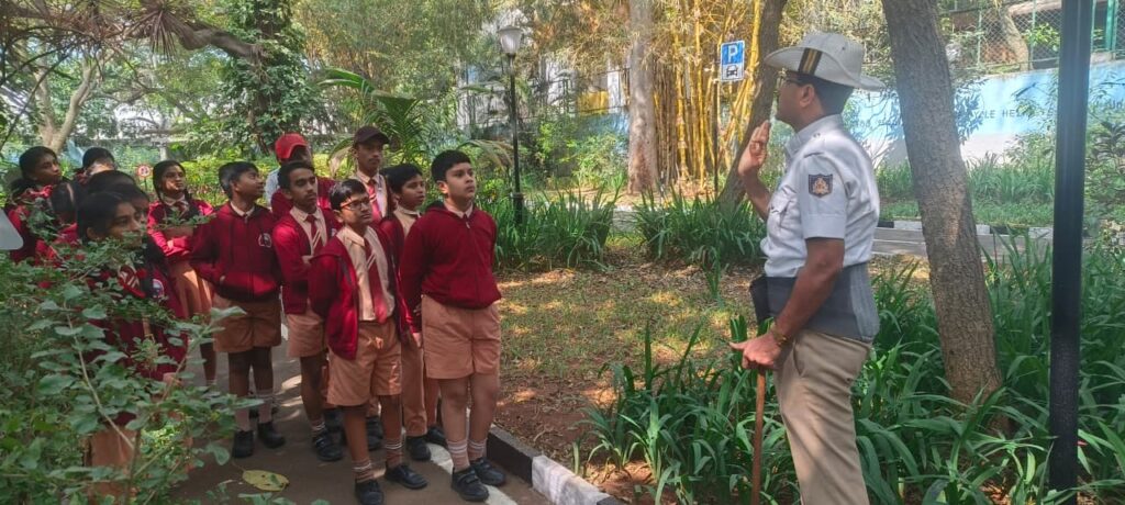A Traffic Signal Awareness Program was conducted for students in the Traffic Signal Park, St.Mark’s Road/Museum Road by Yeshwantpur Traffic Police , featuring miniature roads,signals, and signs for hands-on learning about traffic rules.